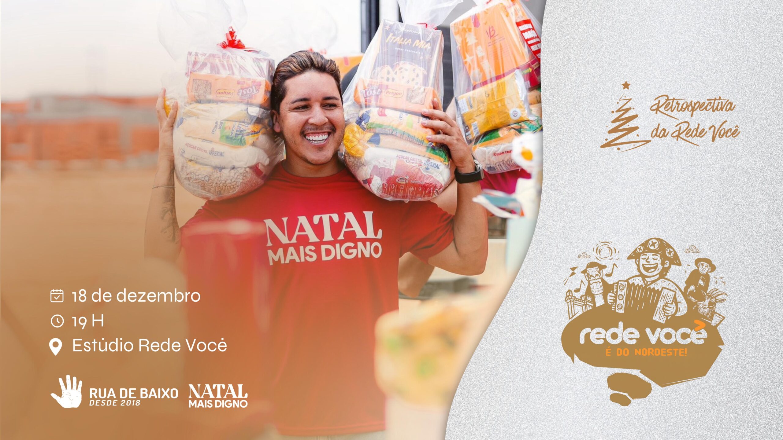 A transmissão ganha um significado ainda mais forte ao firmar parceria com a Rua de Baixo, organização que desde 2018 atua no apoio a famílias em situação de vulnerabilidade. Juntos, eles reforçam o projeto Natal Mais Digno, iniciativa voltada para garantir uma ceia natalina mais humana para quem enfrenta insegurança alimentar.