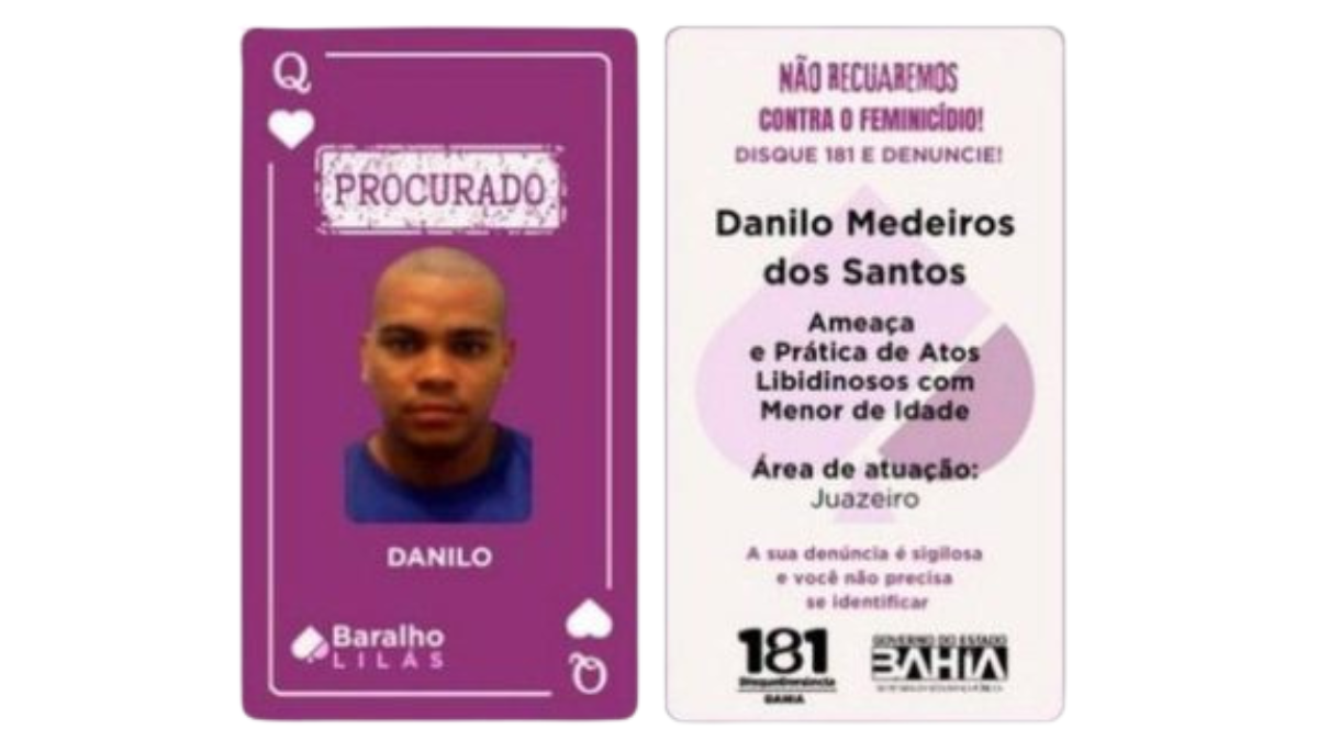 Após a prisão, o homem foi encaminhado à delegacia, onde foram adotados os procedimentos legais. Ele segue à disposição da Justiça. O Baralho Lilás é uma iniciativa da SSP-BA que reúne foragidos investigados por crimes praticados contra mulheres, com o objetivo de facilitar a identificação e a captura dessas pessoas.