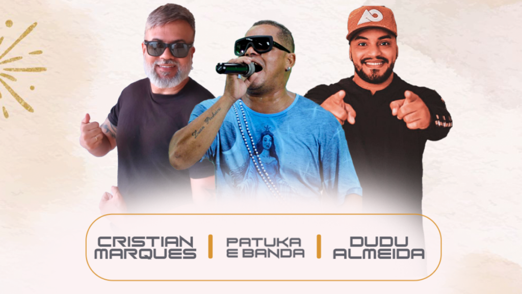 A programação começa com o show de Christian Marques, seguido por Patuka e Banda, mantendo a animação do público. Para encerrar a noite, Dudu Almeida sobe ao palco, garantindo dança e celebração até o fim do evento.