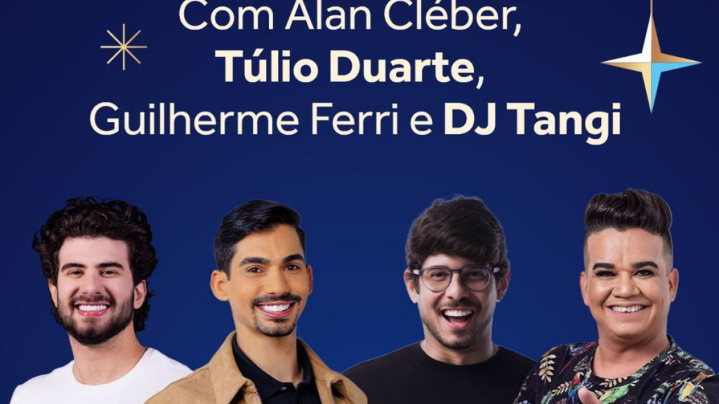 A programação musical traz estilos variados para embalar a noite da virada. Estão confirmadas apresentações de Alan Cléber, Túlio Duarte, Guilherme Ferri e do DJ Tangi. Os shows acontecem na quarta-feira (31), a partir das 20h. À meia-noite, o público poderá acompanhar a tradicional contagem regressiva e um espetáculo de fogos de artifício com aproximadamente oito minutos de duração.
