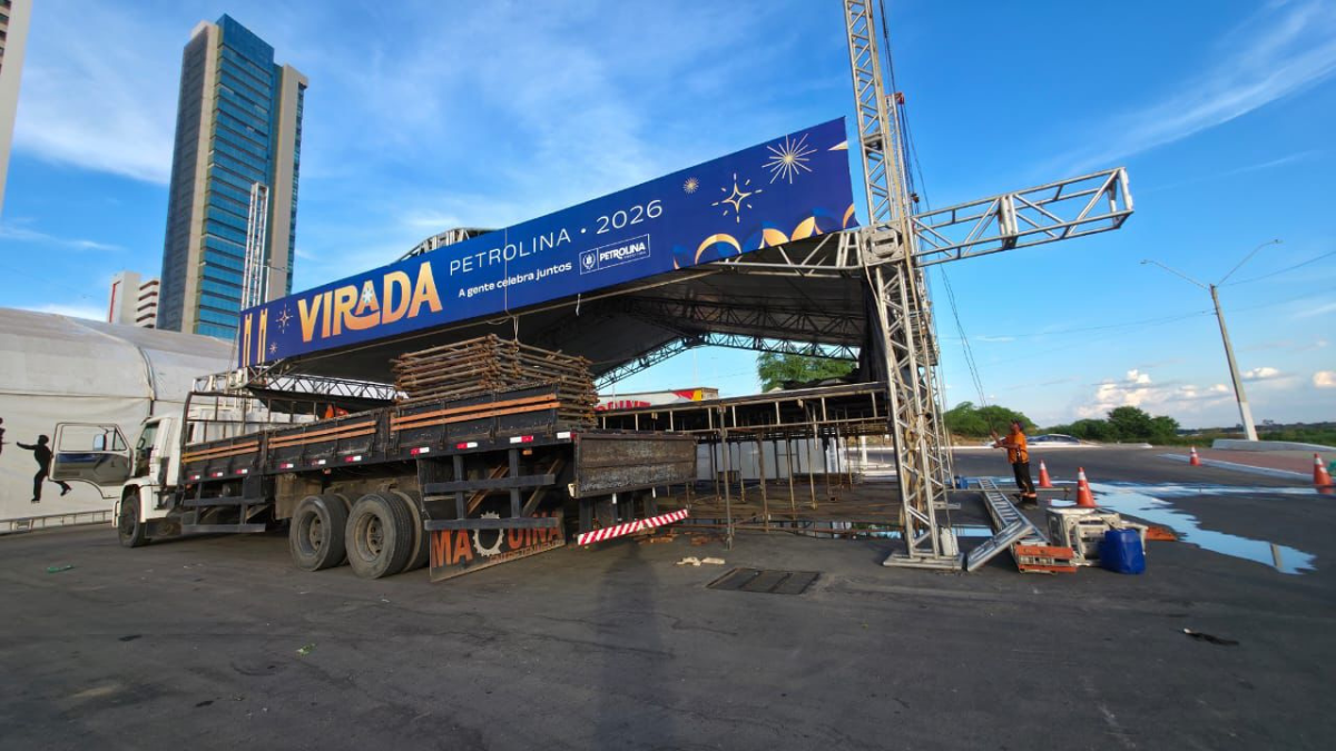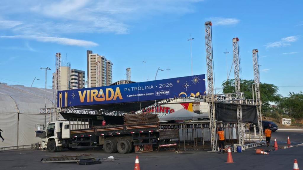 A montagem da estrutura que vai receber a Virada Petrolina já começou e reforça a expectativa para a chegada de 2026 na cidade. O evento, que será realizado na Porta do Rio, na Orla, às margens do Rio São Francisco, entra em sua quarta edição e deve atrair moradores e turistas para celebrar o Réveillon em um dos principais pontos turísticos do município.
