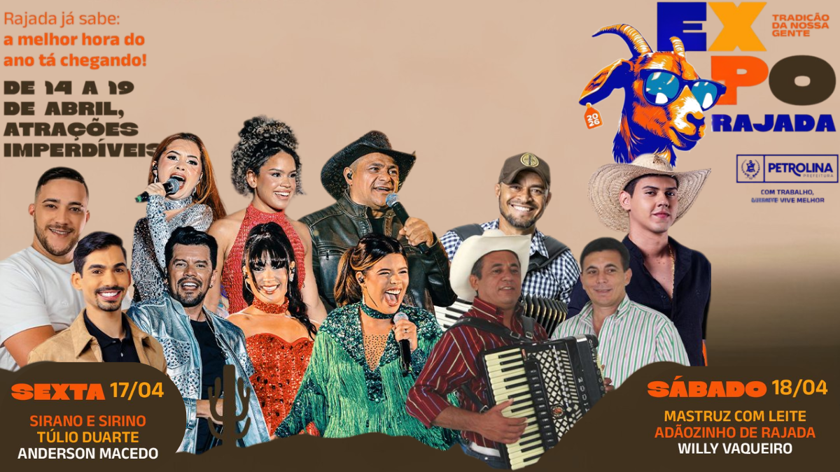 A Prefeitura de Petrolina anunciou a programação oficial da ExpoRajada 2026, evento tradicional do distrito de Rajada que integra o calendário cultural da zona rural do município.
