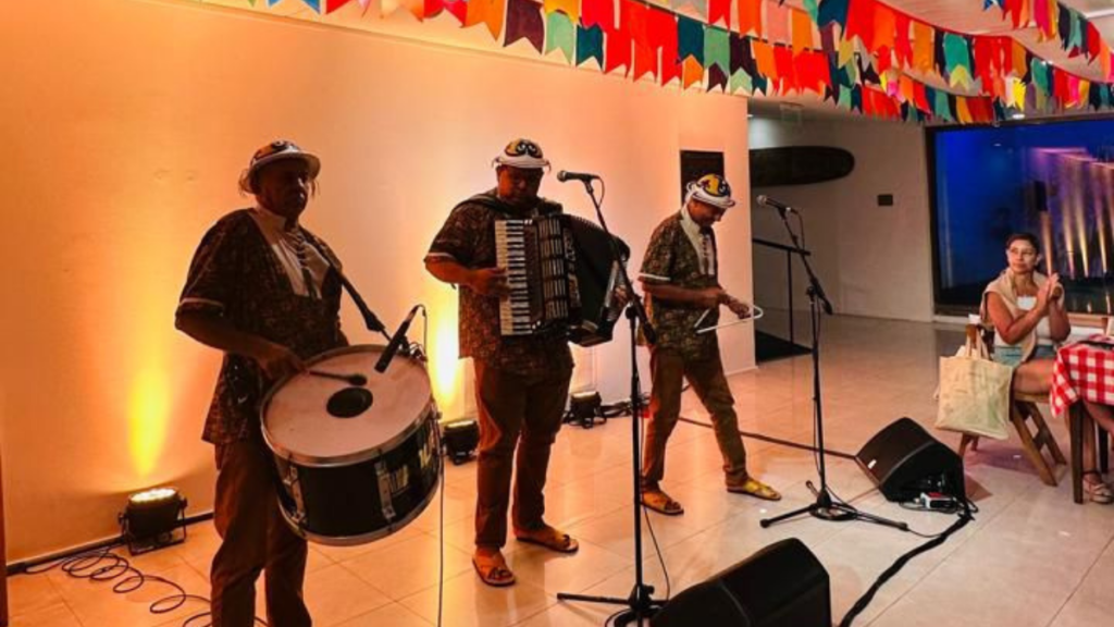 Durante o evento, foram distribuídos materiais promocionais em português e espanhol, incluindo vídeos, folders e itens personalizados, destacando os principais atrativos turísticos e a importância do São João para a economia local.