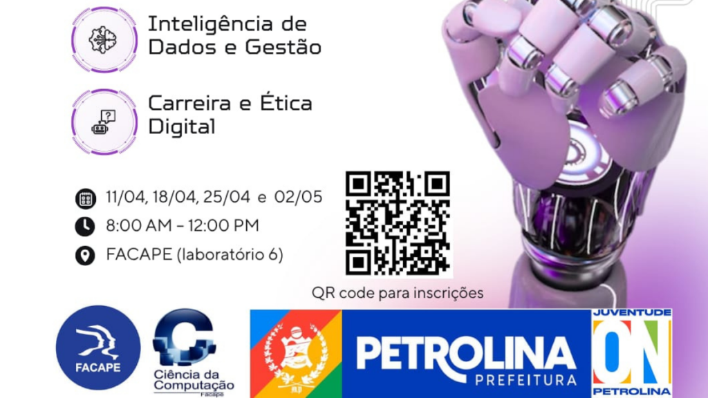 As atividades serão realizadas nos dias 11, 18 e 25 de abril e 2 de maio, sempre das 8h às 12h, no laboratório 6 da Faculdade de Petrolina (FACAPE). Cada turma contará com 30 vagas destinadas a jovens com idades entre 15 e 29 anos. A proposta é ampliar o acesso à capacitação em áreas estratégicas e incentivar a preparação para novas oportunidades profissionais.